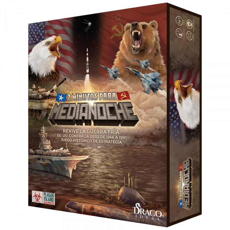 2 Minutos para medianoche es un juego de simulación histórica que recrea los 50 años de Guerra Fría en partidas desde 1 hora de duración hasta 7 en el escenario más largo, para 1 ó 2 jugadores.