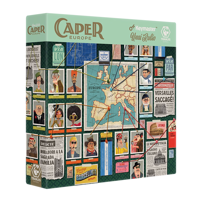 Caper: Europe de Tranjis Games te sitúa en el competitivo submundo criminal de las grandes ciudades europeas. En este juego de estrategia para 2 jugadores, deberás formar la banda perfecta, equiparla con artilugios y dominar el arte del robo para superar a tu rival. Inteligente, elegante y con una fuerte dosis de táctica, este título es perfecto para partidas intensas en pareja.