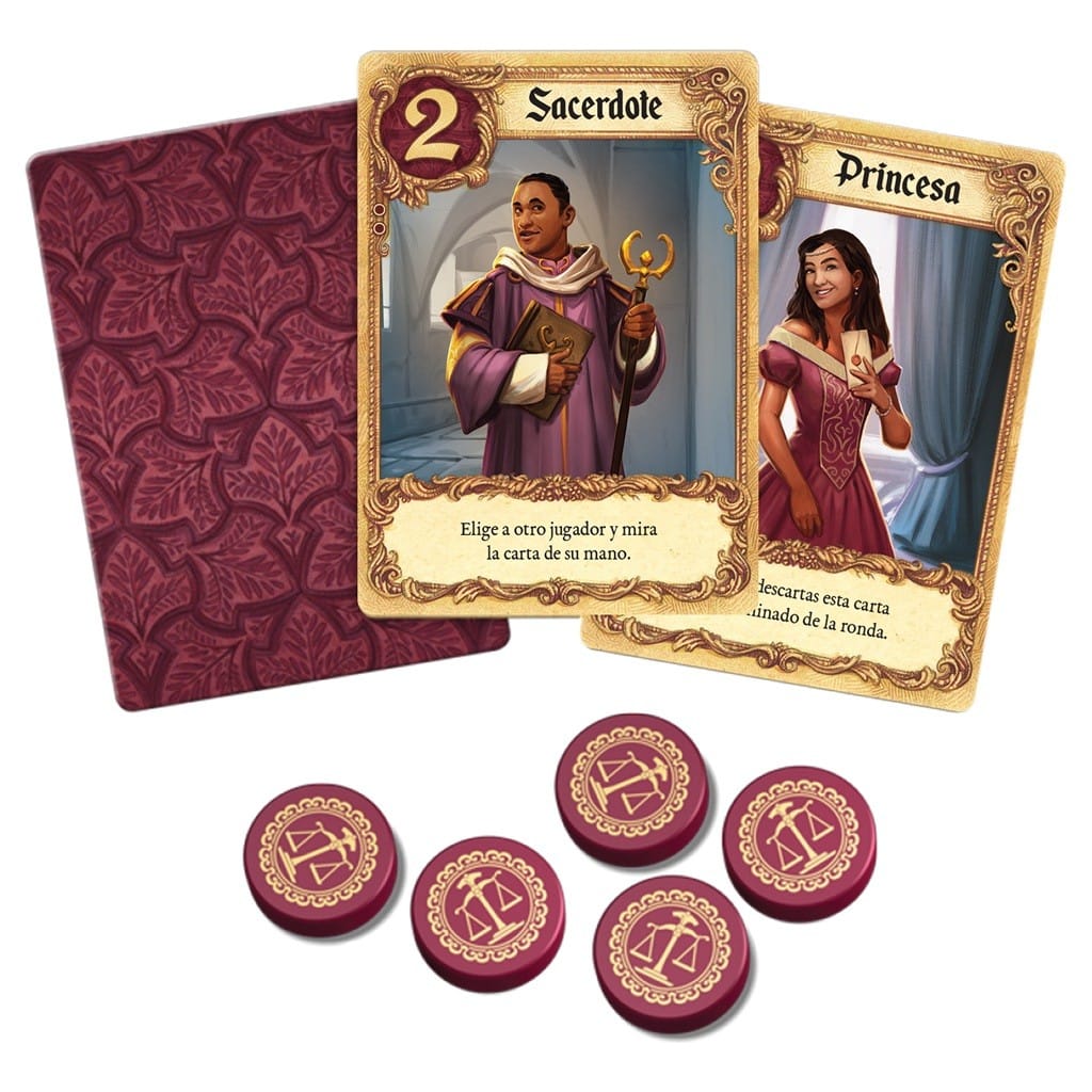 Cada jugador comienza con una sola carta. En su turno, roba una carta del mazo y juega una de las dos que tenga en mano. Cada carta representa a un personaje de la corte y tiene habilidades especiales: desde espiar al rival hasta protegerse de intrigas o eliminar a oponentes.